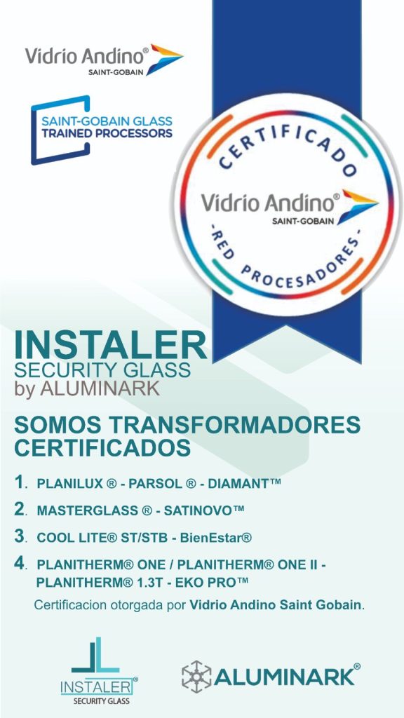 INSTALER SECURITY GLASS By ALUMINARK se complace en anunciar que ha obtenido los reconocimientos como TRANSFORMADOR CETIFICADO EN VIDRIOS: